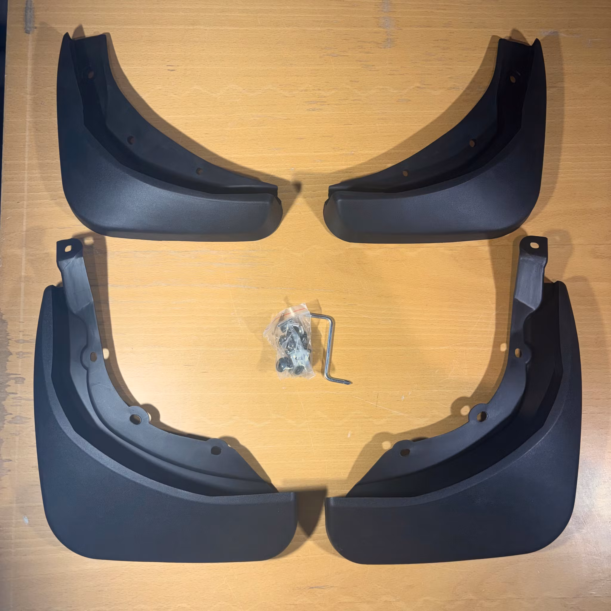 - 4 mud flaps: 2 front (left/right) and 2 rear (left/right).
