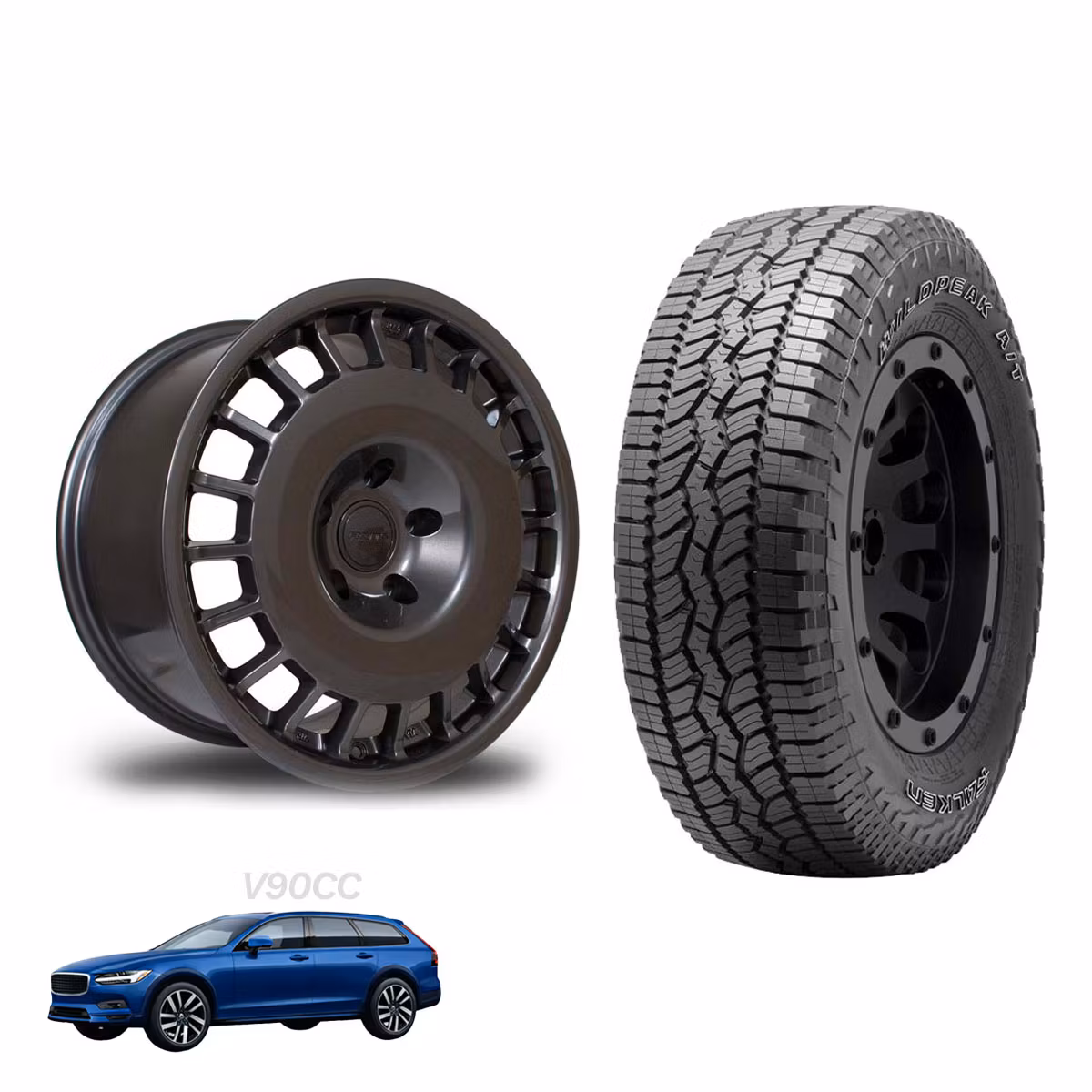 Upgrade your Volvo V90 Cross Country with a complete wheel and tire package that combines style, functionality, and performance. This package is perfect for those who love overlanding, off-road driving, gravel roads, and forest trails, while still maintaining practicality for daily use and family life. With Falken Wildpeak A/T3WA, high-quality tires built for all-weather performance and adventure.